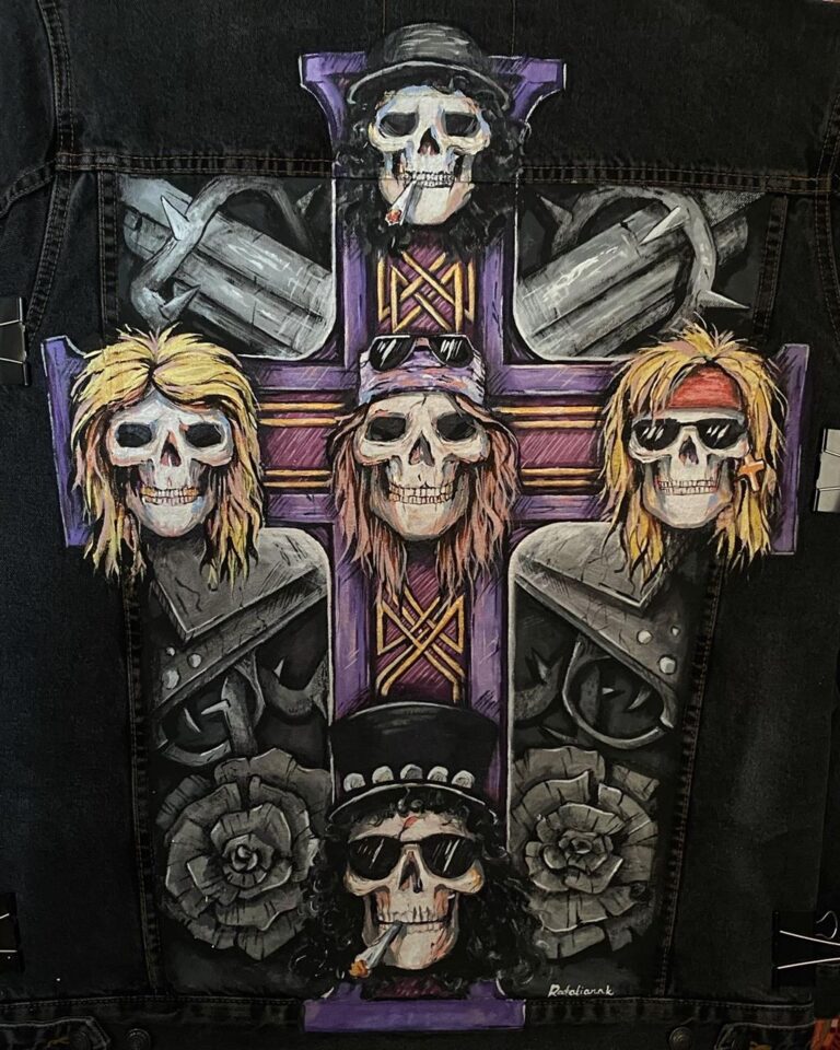 Maluję na kurtkach jeansowych, blachach, ścianach, płótnach.